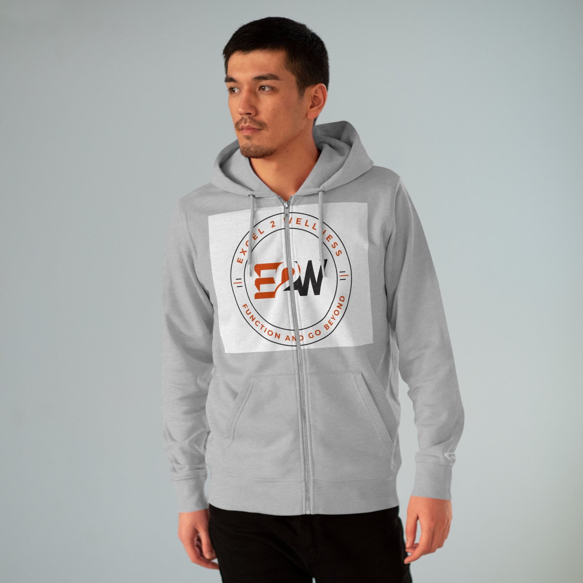 Easy to wear, easy to style, and still keeping with your organic aesthetics, we present the iconic men's zip-up hoodie sweatshirt. Laced with cool round drawcords in matching color with their metal tipping, a metal zipper, and eyelets, double-layered hood plus a kangaroo pocket with wide double topstitches, you will definitely enjoy the friendly touch to eco-fashion this zip hoodie brings.