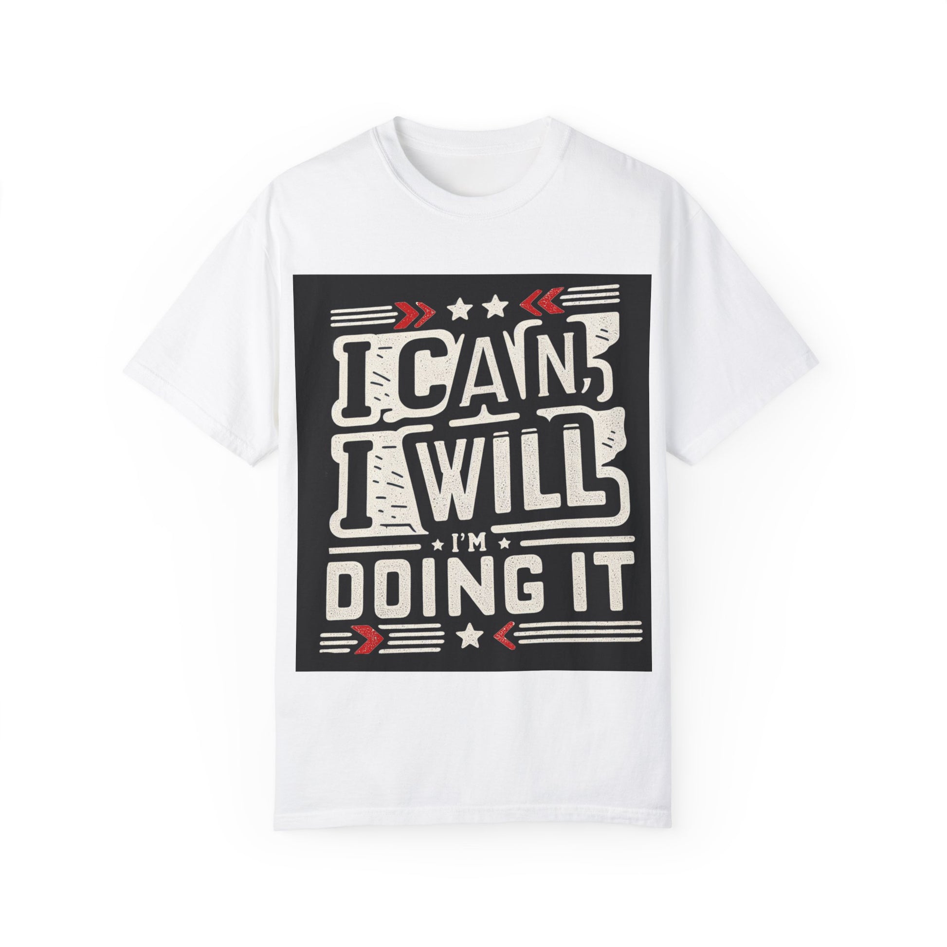 Motivational Unisex Garment-Dyed T-Shirt - "I Can, I Will, I'm Doing It" - Perfect for Fitness Enthusiasts
